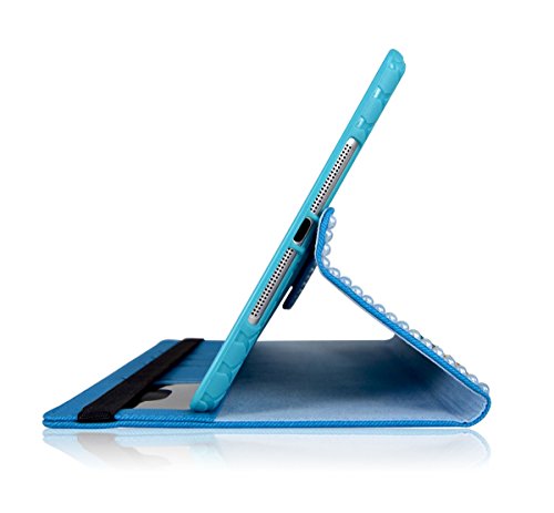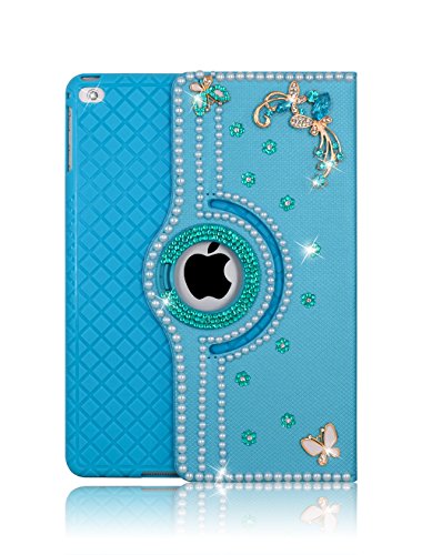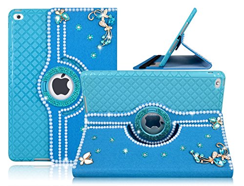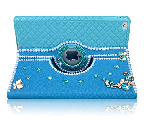 iPad Air / iPad Air 2 Case Multi DIY Bling Sparkle Glitter Flower Full Protection 360 Degree Rotating Leather Smart Stand Case With with Separable TPU Back Cover for Apple iPad Air & iPad Air 2 Blue