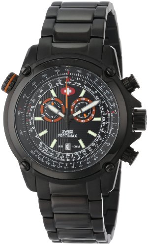 -. Binding : Watch -. Brand : Swiss Precimax -. Color : Black -. Department : mens -. EAN : 0857837002833 -. Feature : Swiss chronograph movement / Case diameter: 48 mm / Scratch resistant, shatter resistant sapphimax crystal / Stainless steel case with stainless-steel band / Water resistant to 330 feet (100 M): suitable for snorkeling, as well as swimming, but not diving -. Label : Swiss Precimax -. Manufacturer : Swiss Precimax -. Model : SP13075 -. MPN : SP13075 -. PartNumber : SP13075 -. ProductGroup : Watch -. ProductTypeName : WATCH -. Publisher : Swiss Precimax -. ReleaseDate : 2013-08-12 -. Studio : Swiss Precimax -. Title : Swiss Precimax Men's SP13075 Squadron Pro Black Dial with Black Stainless-Steel Band Watch -. UPC : 857837002833