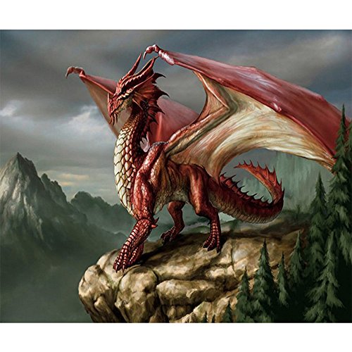 FKUO 5D DIY Diamond Painting "Red winged Dragon " animal world Embroidery 2.8mm Round Diamond embroidery Fashion home decor (30 X 25 cm)