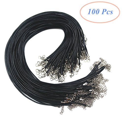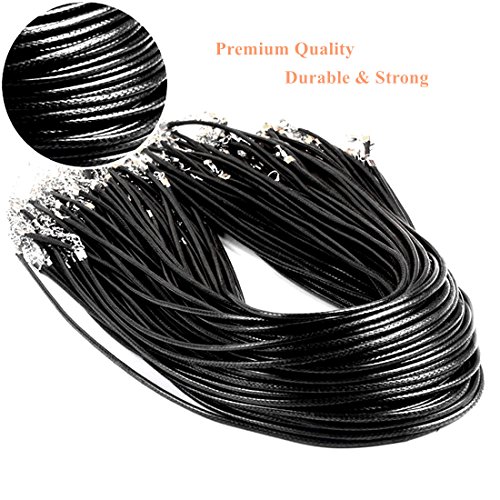 Oexper 100Pcs Black Color 18 Inch 2.0mm Waxed Cotton Necklace Cord Bulk with Lobster Clasp for Jewelry Making