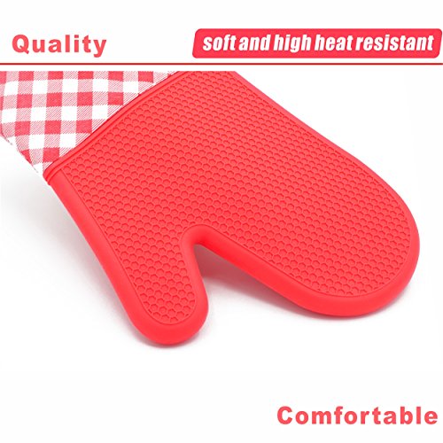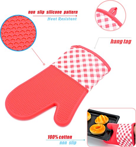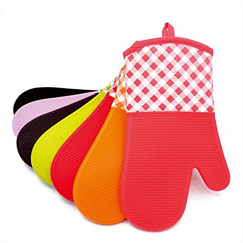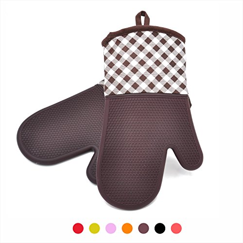 YUTAT Silicone Oven Mitts Heat Resistant 450 F Plaid Pattern Cooking Gloves Non-Slip Waterproof Potholders 1 Pair (Brown)