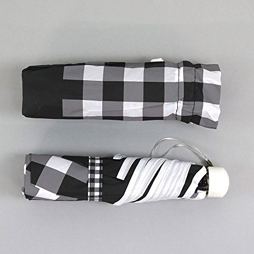 -. Title : アテイン 晴雨兼用軽量楽々ミニ折畳傘 親骨50cm チェックプリント 白地×黒 6473
