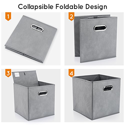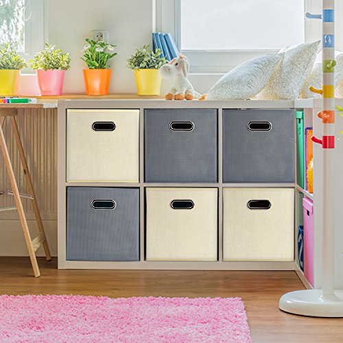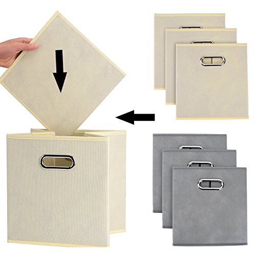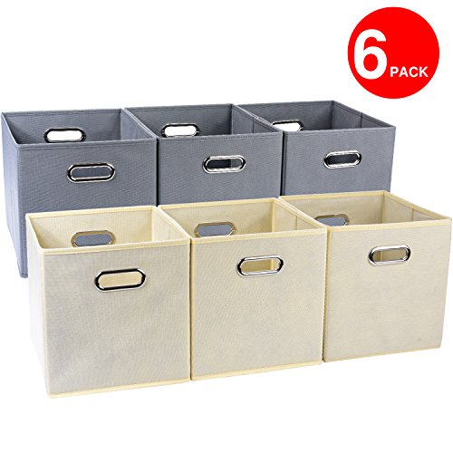 - 【Decent size for most shelves】:6 pack include(3 grey + 3 beige ). Each of these storage cubes is 10.5” x 10.5” x11”,which is suitable for most storage shelves.this Storage Basket maximizes storage possibilities by providing you lightweight and space-saving solutions.