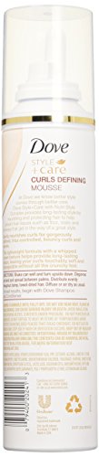 Dove Curls Defining Mousse 7 oz with Nutri-Style Complex nourishes and protects your hair for long-lasting style. Dove Curls Defining Mousse 7 oz hair mousse has a lightweight formula with a whipped cream texture that gently nourishes hair to help eliminate frizz without all the crunch. Get gorgeous, well-defined, touchably soft and manageable curls with Dove Curls Defining Mousse 7 oz.