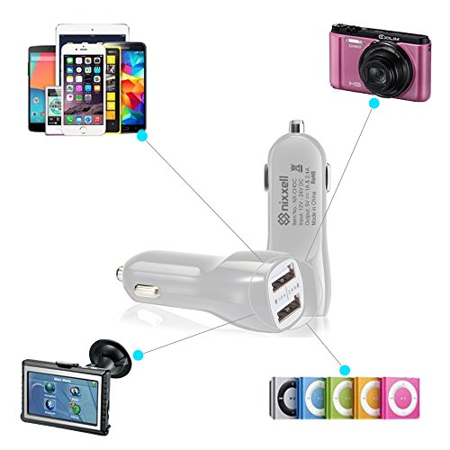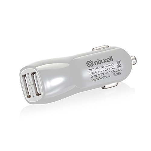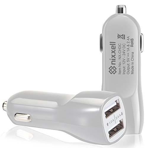 -. Feature : • HIGH POWERED USB ports allow rapid charging of energy demanding devices like smartphones tablets, MP3 Players , PSP, GPS , Cameras etc. Use your existing USB charging cables to charge most USB powered devices (Cables Not Included) / • INTELLIGENT CIRCUIT DESIGN protects against over-heating, over-currents, over charging and short circuit; Charging stops when battery is full. Smart chip identifies each attached device and provide the highest recharging power that the devices can adapt to. / • DUAL PORTS (2.4A & 1.0A) can charge 2 devices quickly & safely at the same time - Guaranteed for over-charge and over-heat protection / • SAFETY: Premium construction and circuitry with CE, FCC & RoHS certification protect you and your device. Illuminated blue LED when charging - Plugs into any cigarette lighter or vehicle accessory outlet / • NO INTERFERENCE WITH OTHER DEVICES : No radio loss in your car or effect to Bluetooth or Wi-Fi devices. Backed with 1 Year Nixxell Replacement Warranty !