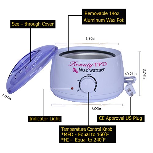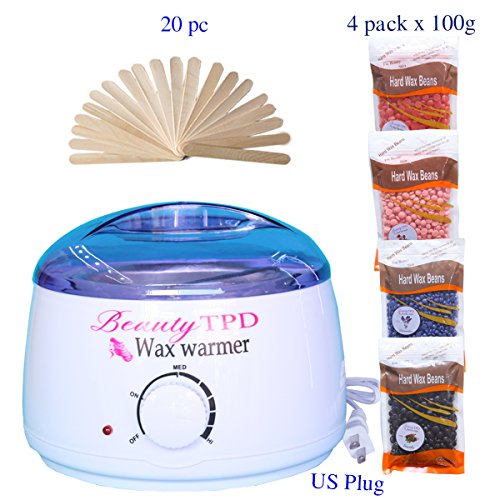 - 20 WAXING APPLICATORS: Every Beauty TPD waxing warmer kit also contains a set of 20 wood wax applicator sticks for a mess-free application. Simply dip your stick, spread the wax, let cool for a couple of seconds, peel & repeat.