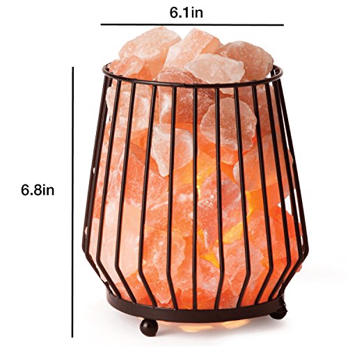 Package Includes: 1 - Himalayan Salt Lamp in Barrel Metal Basket Design with Natural Himalayan Salt Chunks, Dimmable Cord, and Bulb
