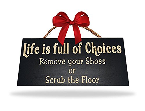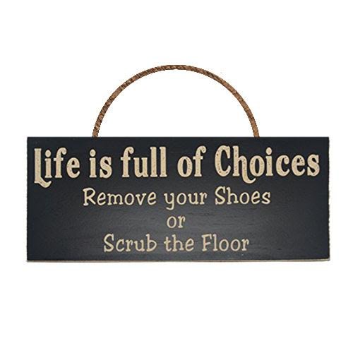 Life Is Full Of Choices Remove Your Shoes Or Scrub the Floor Wood Sign for Home Décor and Kitchen Wall Décor -- PERFECT HOUSEWARMING GIFT!!!