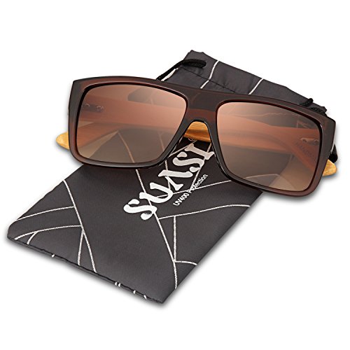 Suasi Uv Protection Sports Glasses Cycling Wood Sunglasses with Bamboo Legs for Riding Driving Fishing Running Golf Yj00121 (brown)