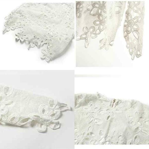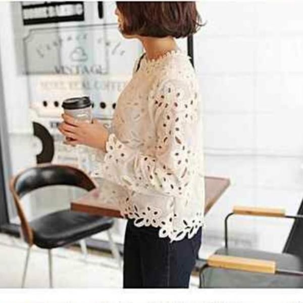 商品詳細長袖 透かし編みレース 花柄 ブラウス トップス 白サイズ展開は:FREEになります。 採寸は下記通りです、ご参考ください。 ※実寸を記載しておりますので、お手持ちのお洋服と 比較いただけると、サイズ選びの目安になります。※着丈の参考に ⇒ 身長別着丈ガイド! 【サイズ(cm)】 (着丈 バスト 肩幅 袖丈) FREE: 53 90 39 51 【カラー】 ホワイト 【素材】 - コットン/ポリエステル 【仕様】 伸縮性:なし 裏 地:なし 透け感:あり