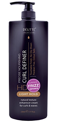 Curls intel light curl cream define stress-free beautiful curls within few minutes without need for styling tools or heat. Unlike mousse or gel that may leave hard crunchy effect in your hair, Argan elixir curl enhancer absorbs into hair quickly without greasy effect. You don't need to waste time blending mixtures of multiple curly hair products to tame your curls for natural shinny look anymore, this curl control cream is everything you need for your curly hair or wavy hair styling. We call it touchable curls cream because it conditions, shine and tame frizz without leaving greasy oil or build-ups in your hair. The best part is that you will not feel the product weight in your hair. It is light curl cream, infused vitamin-E and omega-3 fatty acid for growth. You will visibly notice the difference in shinier hair and well separated frizz free curls with longer bouncy hold. Your hair is protection and against curls unfriendly heat and humidity damage. Argan Elixir curl definer is completely paraben free, safe to use with hair curling tools such as diffuser, curling wand or curl former if you like. You can use Argan Elixir curl definer cream for all hair textures - coarse, thick, dry hair, fine hair, treated hair or virgin hair extensions. It is produced under strict Quality Control System to ensure consistent delivery of stable quality product at all time. NOT TESTED ON ANIMALSFeature