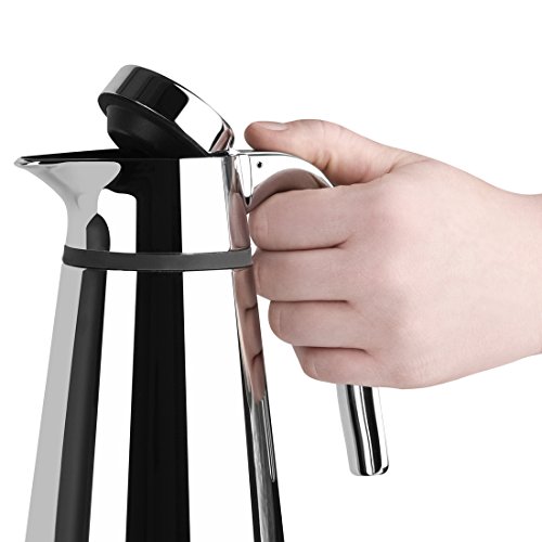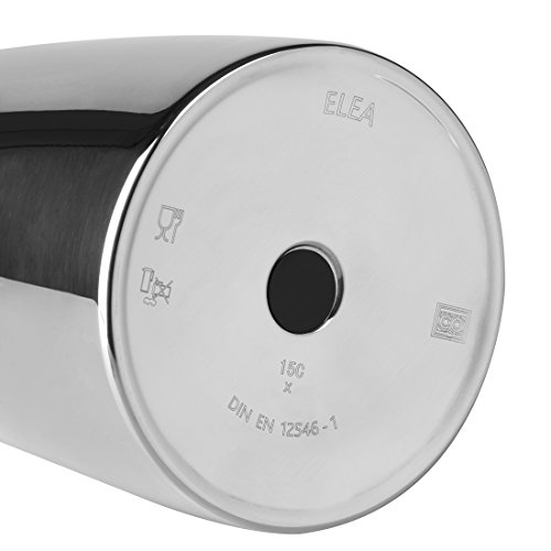 Studio : Emsa Publisher : Emsa Binding : Kitchen Product Description The factory, Emsa, was established in Germany over 60 years ago and is a leading manufacturer of insulated servers, kitchen accessories and many other consumer goods. The Elea Thermal Carafe features a double-walled 18/10 stainless steel interior and exterior. It has optimum heat/cold retention in a sleek, pure design. The Elea keeps hot beverages hot for up to 12 The 12 hours and cold beverages cold for up to 24 hours. The handle stays cool to touch. To pour drip-free, simply push the lever. Releasing the lever re-seals it. For easy filling and cleaning, the attached lid opens all the way. Easy open lid is convenient and a one-hand operation. The Elea comes in 3 sizes: 20.29 fl. oz, 33.82 fl. oz, and 43.97 fl. oz. Dishwasher safe. 10 year warranty against manufacturer defects. Hint: To enhance heat retention even further, preheat your server with hot water while your coffee is brewing. 0