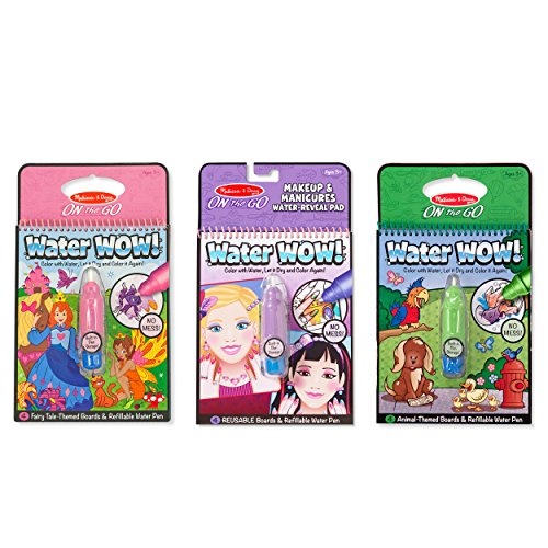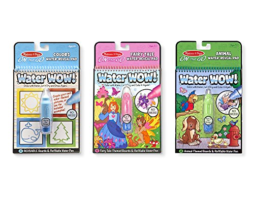 No-mess painting for kids! This exciting paint-with-water coloring book includes four reusable pages and a refillable water pen. Simply use the pen to color in each scene—details and vibrant color appear with every stroke! Then let the page dry to erase the pictures and color it in again and again. This fairy tale-themed book includes four scenes to color, and a search-and-find activity for each scene. The chunky-sized water pen is easy for kids to hold and stores neatly right in the front cover, making this Water WOW! an ideal travel activity book and travel toy for kids!Feature