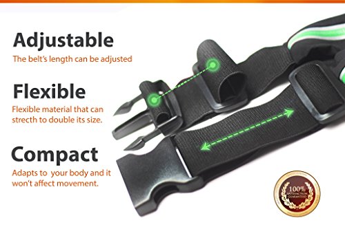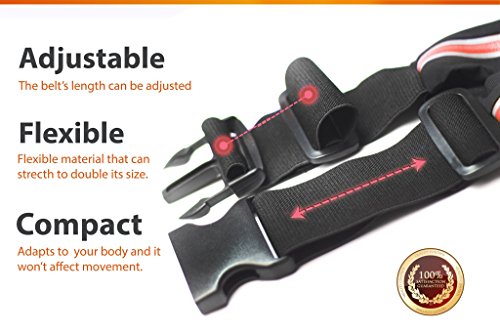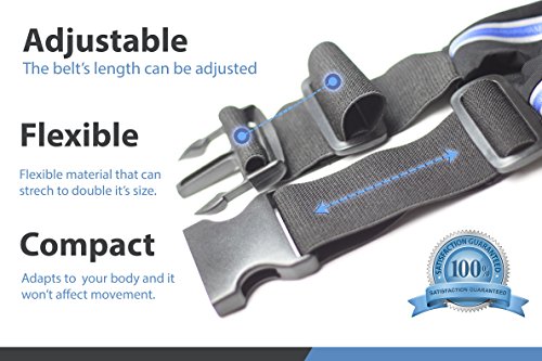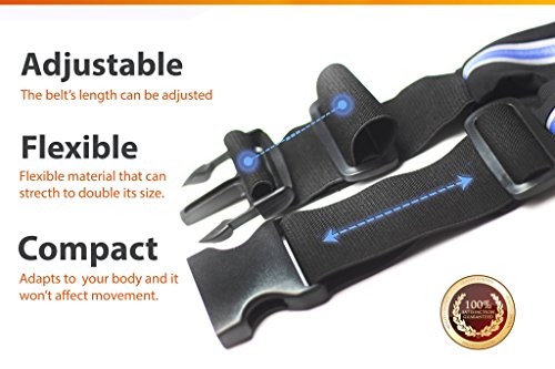 Manufactured from an elastic stretch material, the running belt is completely adjustable and contains 2 spacious, generously sized pockets which allow for easy, secure storage of valuable items such as smart phones, keys, wallets or ID cards. Both pockets are designed with security in mind and are secured with ultra durable, strong zippers, eliminating the risk of loss during tough workouts.