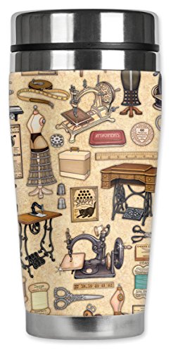Mugzie 2103-MAX "Sewing Supplies" Stainless Steel Travel Mug with Insulated Wetsuit Cover, 20 oz, Black