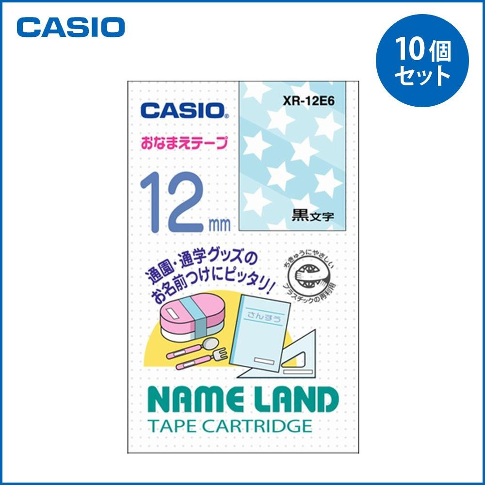 「ネームランド」用テープカートリッジです。ポップな星柄がデザインされたテープです。 製造国:中国 素材・材質:樹脂 商品サイズ:テープ:長さ4m、幅12mm(1個あたり) 仕様:文字色:黒 セット内容:10個セット ※サプライヤー直送品【商品名】CASIO カシオ ネームランド おなまえテープ 星柄 XR-12E6 ×10個セット