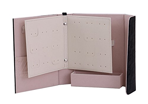 iSuperb Earrings Book Portable Jewelry Display Organizer Ear Studs Storage Book Snap Closure Travel Jewelry Storage Case Can Hold Earrings Rings Necklace Makeup Brush (Black)