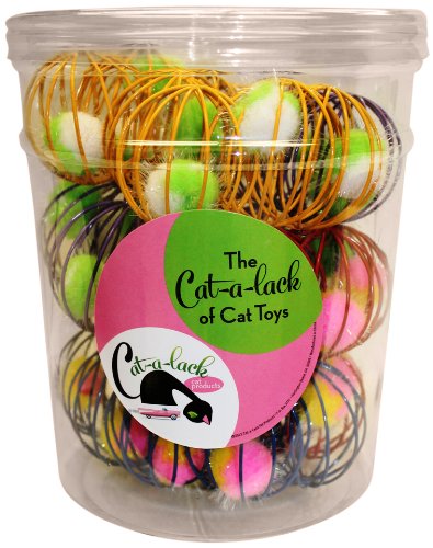 -. Binding : Misc. -. Brand : Cat-A-Lack -. EAN : 0700220039407 -. Feature : Puff ball in the center of cage spins around attracting cats attention / Designed to keep play and exercise in cats daily routine / Made with sturdy design / Colorful and eye catching for your cat / Cagey balls come in 36 pc jar -. Label : Coast 2 Coast Pet -. Manufacturer : Coast 2 Coast Pet -. Model : CA03940 -. MPN : CA03940 -. PackageQuantity : 1 -. PartNumber : CA03940 -. ProductGroup : Pet Products -. ProductTypeName : PET_SUPPLIES -. Publisher : Coast 2 Coast Pet -. Studio : Coast 2 Coast Pet -. Title : Cat-A-Lack 36-Piece Cagey Balls in Jar for Pets -. UPC : 700220039407