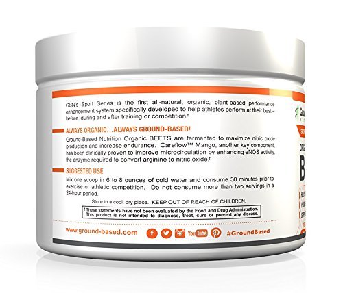 -. Feature : PURE ORGANIC NON-GMO FERMENTED BEETS: Our organic beets are fermented to achieve high nitrate levels to maximize nitric oxide production in the body. / NITRIC OXIDE SUPERFOOD WITH SUPERIOR INGREDIENTS: All of our ingredients are certified organic for maximum efficacy. In addition to our premium organic fermented beets, CareflowTM Mango is added which has been clinically proven to improve microcirculation by enhancing eNOS activity, the enzyme required to convert arginine to nitric oxide. / INCREASES ENERGY AND ENDURANCE: The naturally-occurring nutrients boost energy and endurance by making it easier for the body to transport and utilize oxygen, resulting in more efficient energy production and an increased tolerance for exercise. / SUPPORTS CARDIOVASCULAR HEALTH: GBN's Organic Beets are an excellent source of antioxidants and nitric-oxide-boosting nutrients, which help increase blood flow and oxygen delivery. Higher nitric oxide levels relax the blood vessels which decreases high blood pressure and improves cardiovascular health. / SESTED USE: Mix one scoop in 6 to 8 ounces of cold water and consume 30 minutes P.R.Ior to exercise or athletic competition. May be consumed twice daily for optimal results. GBN's Organic Beets are 100% organic and GMO-free with no added sugars, flavors, fillers, or artificial ingredients. This product is the perfect, performance-enhancing supplement for anyone dedicated to a healthy, active lifestyle.