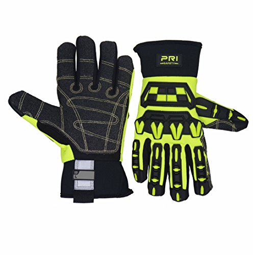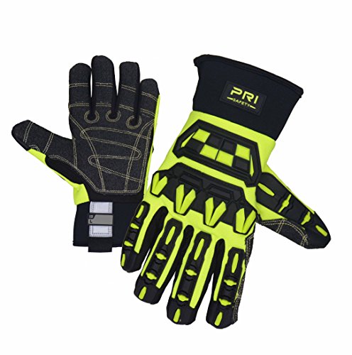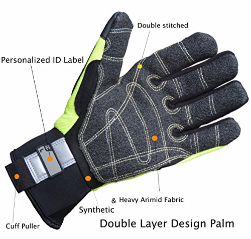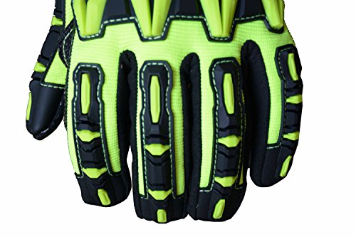 Mechanic Safety Work Impact Glove, Heavy Duty Utility Cut Resistance Level 3 Aramid Fabric Palm Black HI-VIS Yellow (Extra Large)