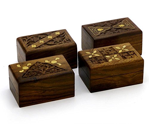 StealStreet SS-IA-WB214 2 inch Wooden Trinket Box Set with Brass Inlay