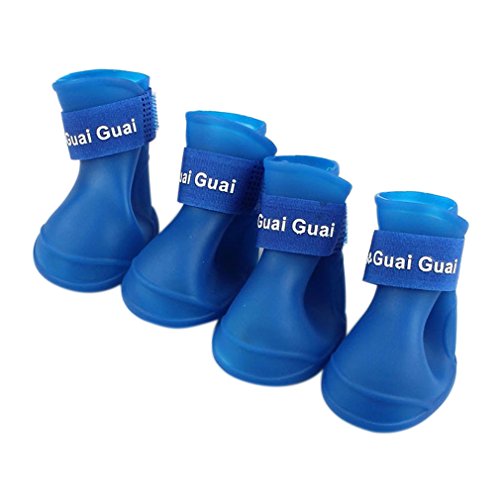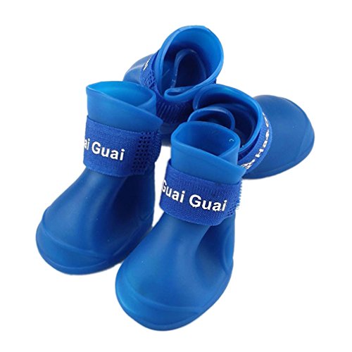 (Inkach)/Pet Supplies/Apparel Accessories/DIRECT FROM USA/Inkach Waterproof Dog Boots, Puppy Pet Silicone Rubber Rain Shoes Booties (S, Blue)