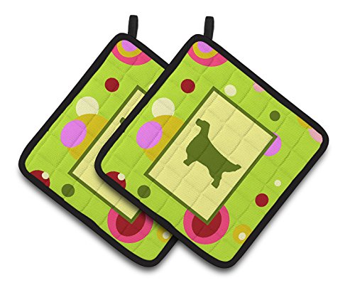 Caroline's Treasures Lime green Dots English Setter Pair of Pot Holders CK1028PTHD, 7.5HX7.5W, Multicolor