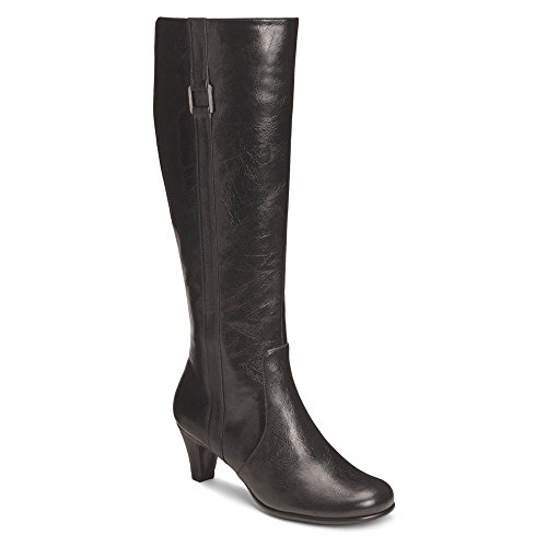 Studio : Aerosoles Publisher : Aerosoles Binding : Apparel Product Description Strut through the wintry streets in School Play boots from Aerosoles. This boot for women is crafted from faux leather or elasticized flexible material. Equipped with Diamond flex outsole, this boot exhibits a sturdy base for all terrains. The Aerosoles boot is designed with a stacked heel that measures 2 ¼" high. The 3 ½ inch high shaft adds depth to your style while the gunmetal hardware ensures durability. Pull out the best ensemble from your wardrobe, pair it with the School Play bootie and get ready to spread envy. 0