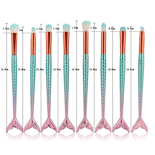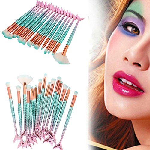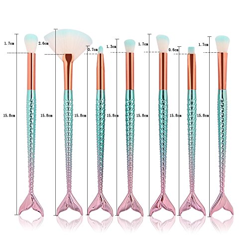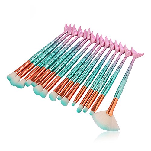 TrimakeShop 11PCS Mermaid Make Up Brushes Set Foundation Powder Cream Eyebrow Eyeliner Blush Cosmetic Concealer Oval Brush 15 PCS