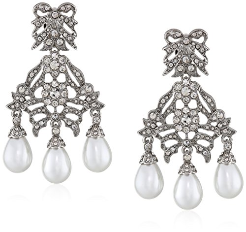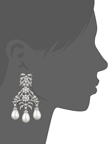 Kenneth Jay Lane Bride Simulated White Pearl Crystal Bow Chandelier Dangle Clip-On Earrings
