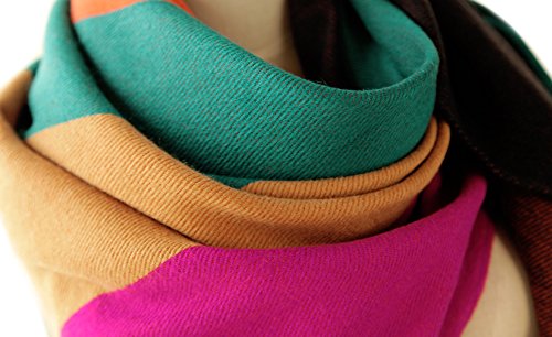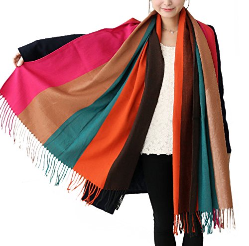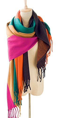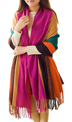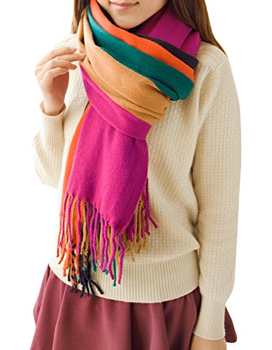 Feature : Material: made with high quality Acrylic, it's breathable and easy to take care. / Features: Soft, comfortable,reversible,tassel trimed, perfect touching feeling,dual purpose(you can use it as scarf or outwear). / Suit for season: winter, spring, autumn. / Multicolor block stripe bohemian style / Size: Length (228cm/89.7in)--width(84cm/33in)