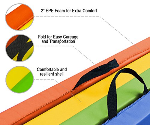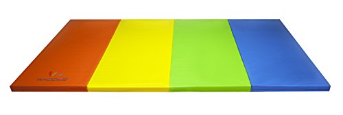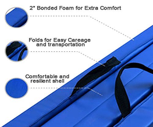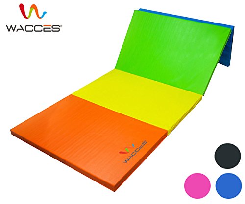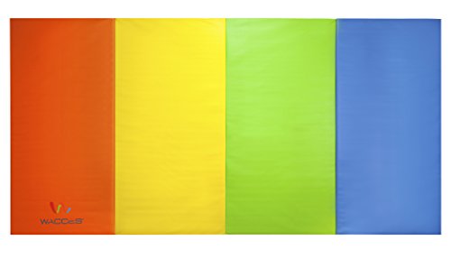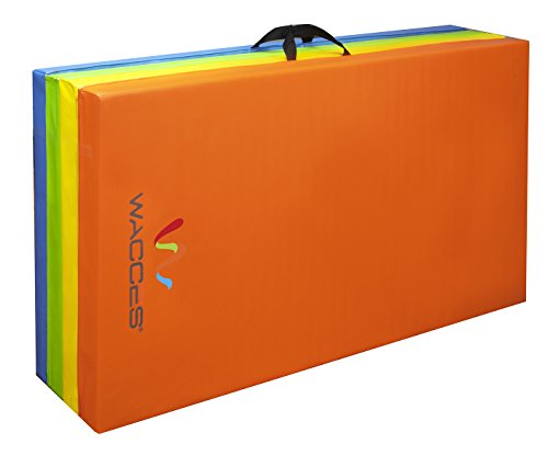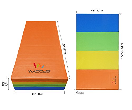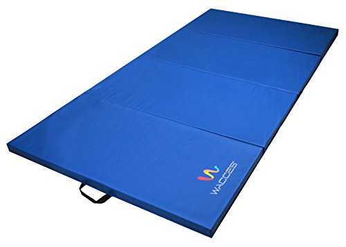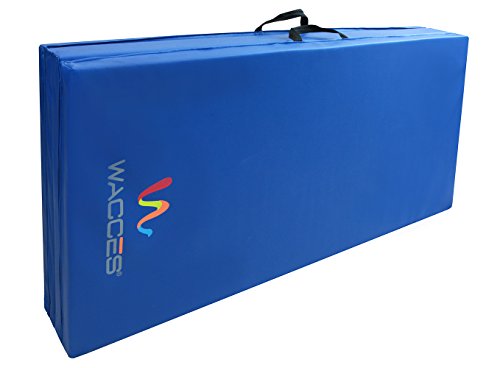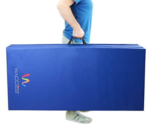 Our Wacces brand 4' x 8' x 2" folding mat is a great addition to your home gym and provides you with a comfortable spot to do your floor exercises. This exercise mat is thick and is quite durable. It has a convenient design so that you can fold it and store it when not in use. The workout mat also has sewn in handles making it portable and convenient, so you will no longer have trouble transporting the mat to and from gymnastics or sporting. Our exercise mat is covered with PU leather which is non-absorbent and will enable you to clean it easily. With its ease of use, durability and its non-absorbent technology, this exercise mat is ideal for a great workout. Features: - Excellent for tumbling, exercise programs, pilates, stretching, yoga, martial arts, gymnastics, day care activities and many other uses - Constructed of 4 panels: each 4' x 2' x 2" - Mat material: 2" thick firm white high density EPE eco-friendly foam - PU Leather: The non-absorbent shell which is fire-retardant, puncture and mildew resistant provides sanitary protection for your workout needs and is sealed by zipper - Folding design for versatility - Folds up easily for carrying and storage - Made with thick long-lasting foam - Sewn handle for easy transportation - Velcro strap on each end of the mat allows for connection to additional mats for tumbling runs. - Easy to clean durable PU leather cover