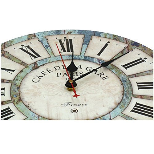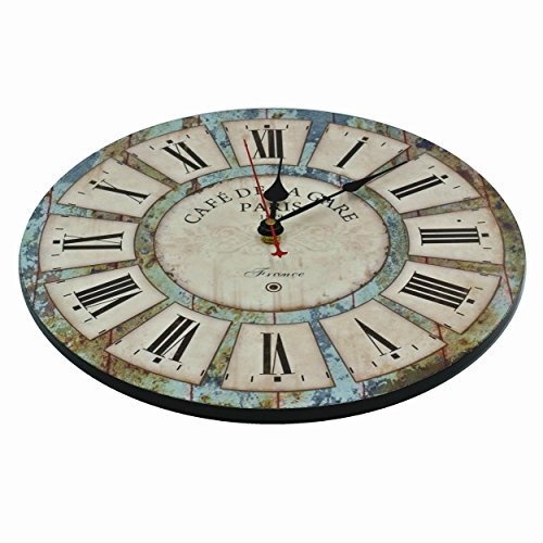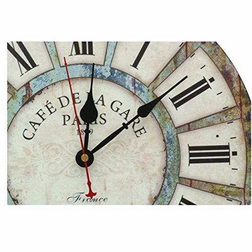 -. Feature : PERFECT DECORATION:French Paris Country Tuscan Style,Rustic Vintage Retro Wooden wall clock with Eiffeltower£¬large roman numerals, black hands, red seconds hand,the colors match pretty with any decor scheme, coordinate with furniture,it goes really well with family room,living room,bedroom,kitchen,bathroom,office,dining room,sewing room or any wall of any color.It is not only a decorative wall clock,but also a great Christmas present choice for your friends and your family.