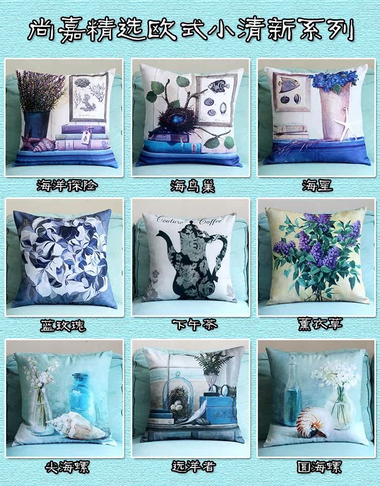 [Name] Europe and the United States small fresh style ocean flower digital printing pillow