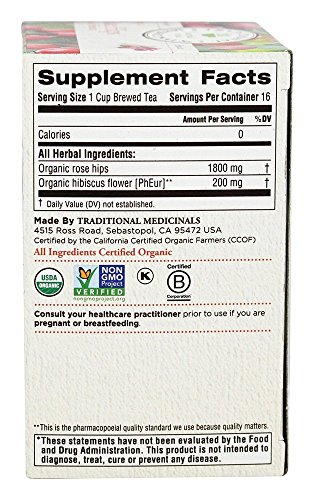 TRADITIONAL MEDICINALS, Organic Rose Hips w/Hibiscus, 16 BAGS
