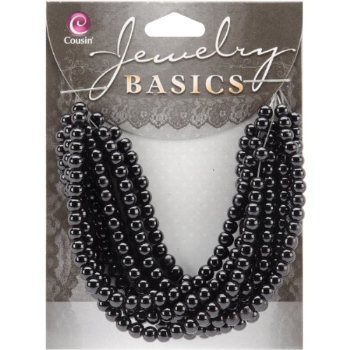 Cousin Jewelry Basics 300-Piece 4mm Round Bead, Black Opaque
