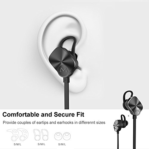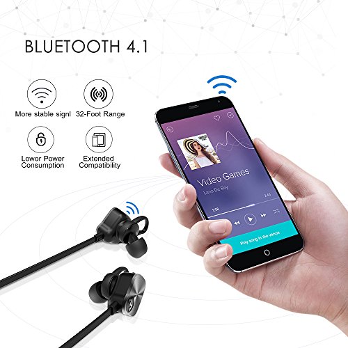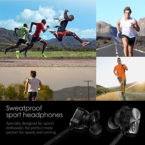 Feature : BLUETOOTH 4.1 : Adopts Bluetooth 4.1 , this headphones connect to your phone or tablet up to 32-feet while ensuring robust and clear sound / COMFORTABLE FIT: With ergonomic design and soft silicone ear hook, this in-ear Bluetooth headphone fits perfectly even for all-day use. / CVC 6.0 NOISE CANCELLATION: Built-in HD microphone and CVC6.0 noise cancellation for high quality, hands-free phone conversation. / SWEATPROOF SPORT HEADPHONE : Premium soft silicone gel surface helps sweat-proof. Perfect for Gym, running, jogging, hiking and outdoor sports. / UNIVERSAL COMPATIBILITY : Compatible with most Bluetooth music players, including iPhone, iPod, Apple Watch, Android, PC and Mac.