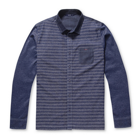 - 레귤러 카라 디자인에 로고 버튼으로 포인트를 줌.