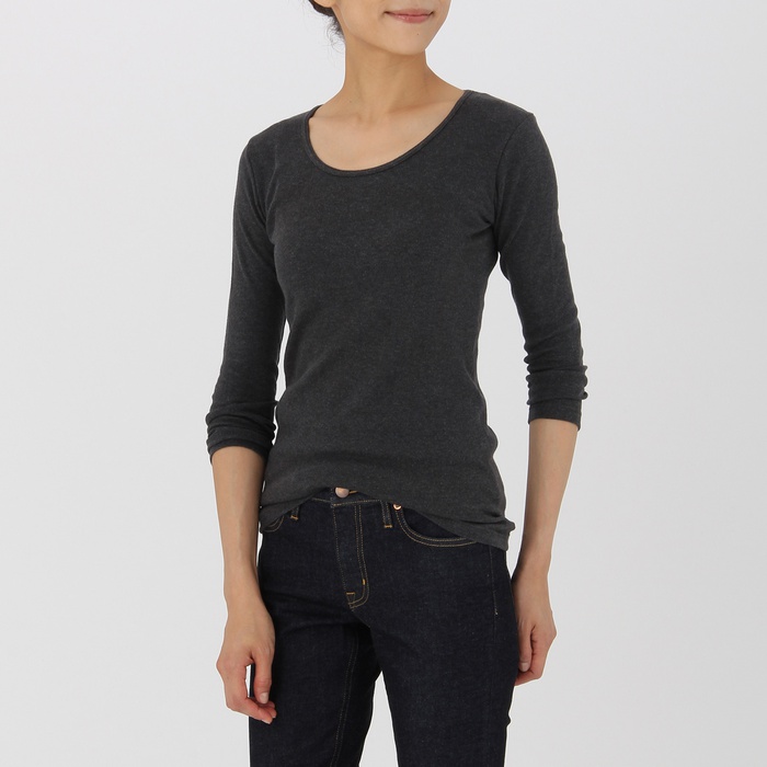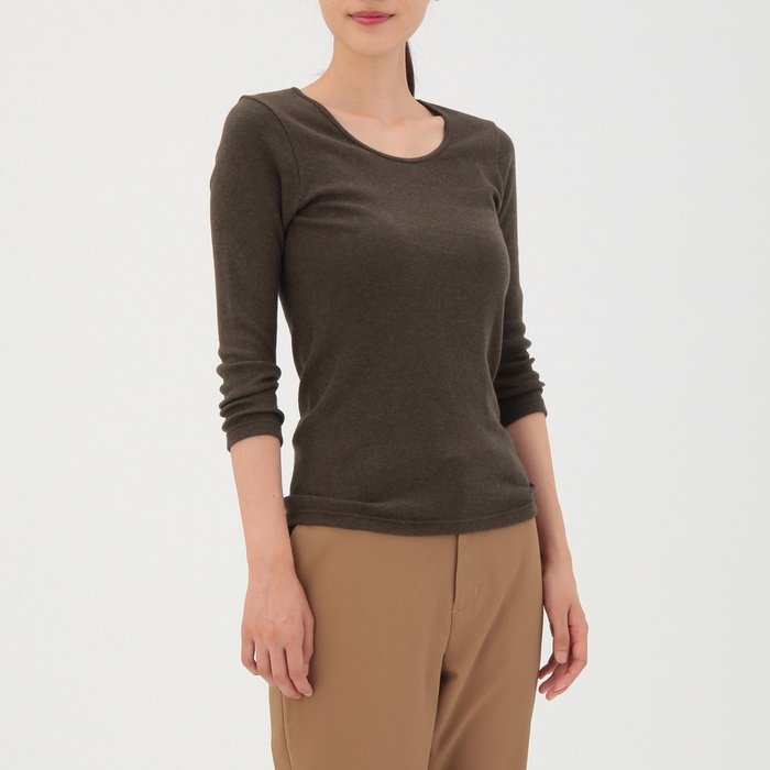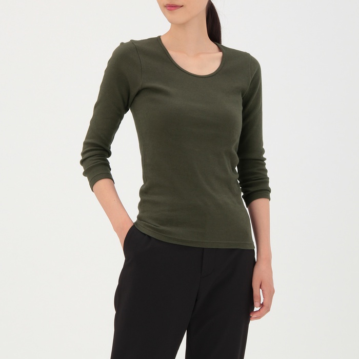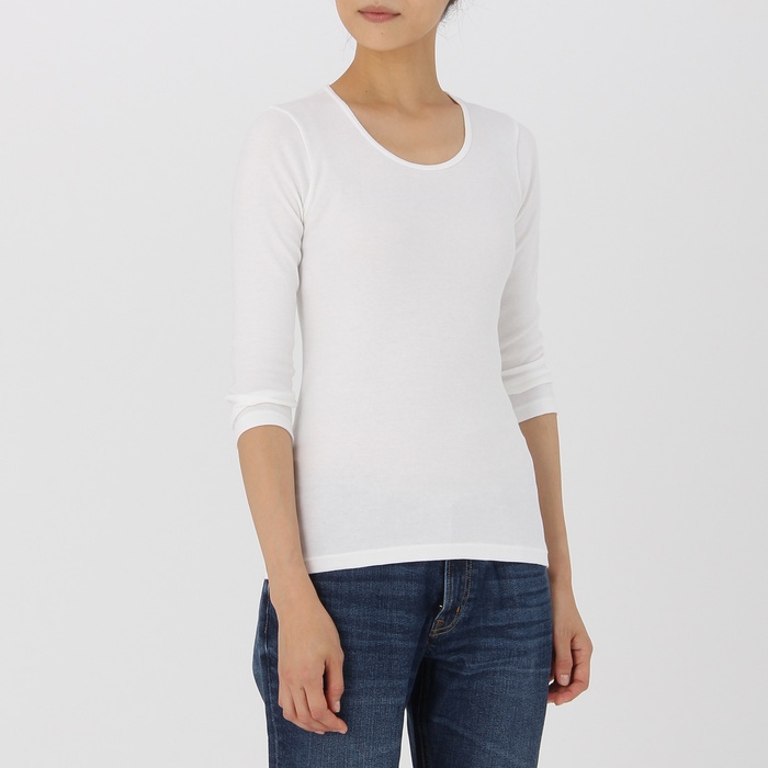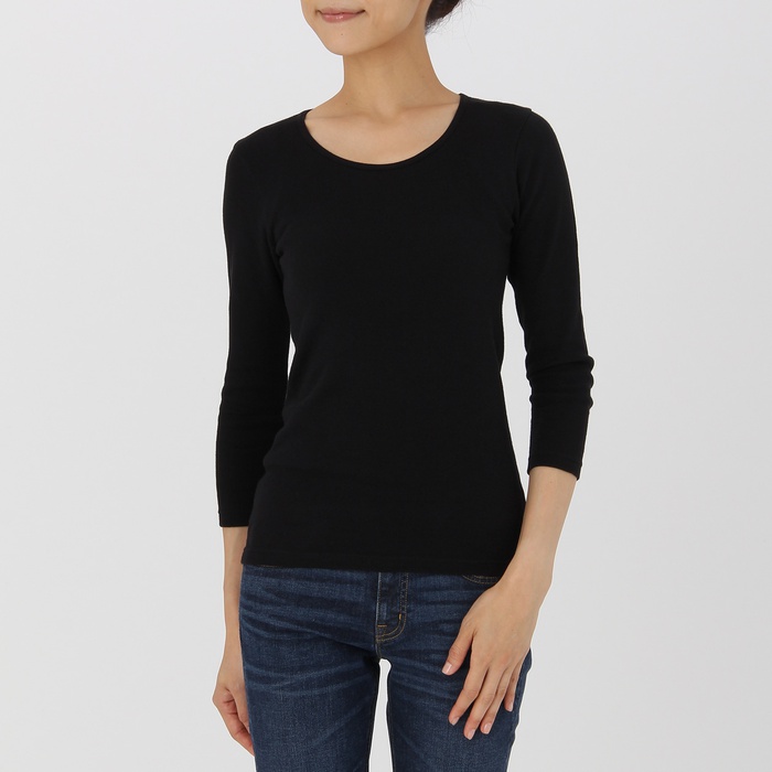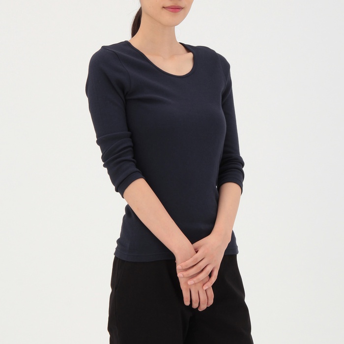 원본상품명: コットンウルスムスあったかUネック八分袖Tシャツ 婦人XSネイビコンビニ受取可