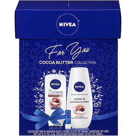 Nivea Cocoa Butter Shower Collection Body Wash, Lotion, and Lip Care For You Gift Set For Mothers Day