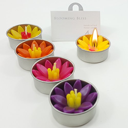 Daisy Flower Scented candle filled Tealight Set 4 (Yellow Orange Pink Purple) Aromatherapy Relax