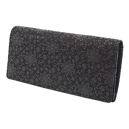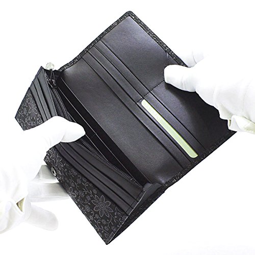 -. Title : INDEN-YA 印傳屋 印伝 財布 長財布 レディース 女性用 黒×黒 クレマチス 2308-01-169
