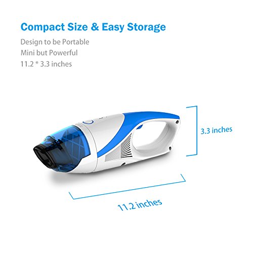 MINI Portable Light Weight Vacuum - Cordless easy handling with only 1.2lbs. PRODUCT DIMENSION: 11.2 x 3.3 x 3.8 INCHES.