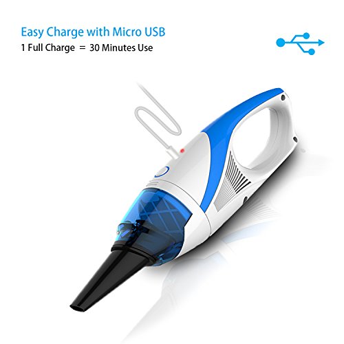 Portable Handled Vacuum Smart Design•Rechargable - Easily charged with USB charger. •Inside Filter Screen - Easily to hold everything inside with no dropping. •Easy to Handle - Comfort handle, start and stop by pulling the trigger. •Portable and Light Weight - Cordless with only 3.30lbs. •Usb Charge - Easy to charge the item every where in your house with USB charger.