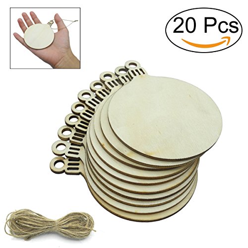Unfinished Wood Ornaments Wood Slice DIY Christmas Ornaments Hanging Decoration 3.15" Round With Pre Cut Strings - 20 Pack