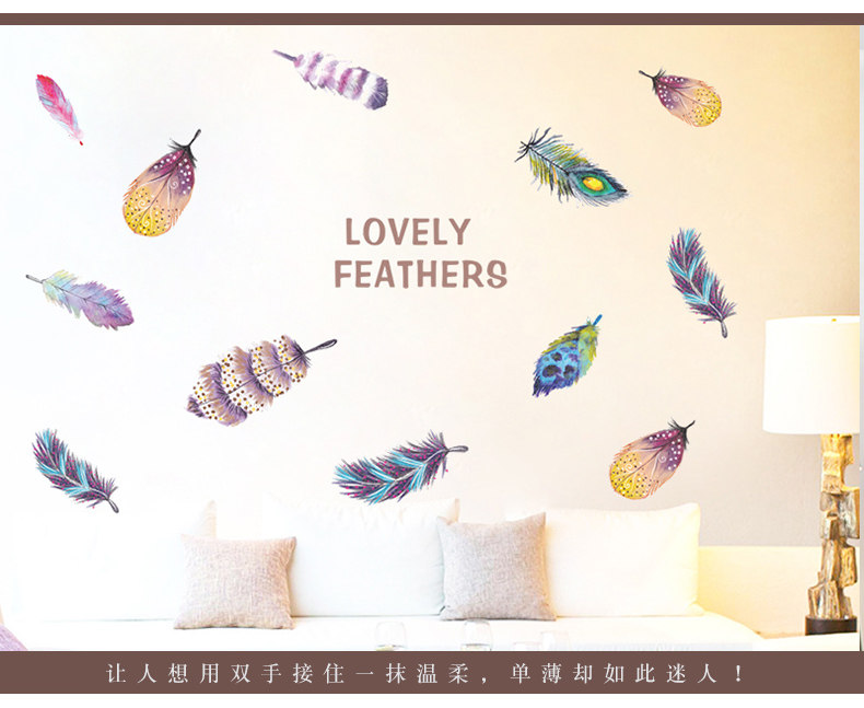 美丽羽毛艺术贴纸客厅卧室自粘防水可移除装饰贴沙发背景贴墙贴