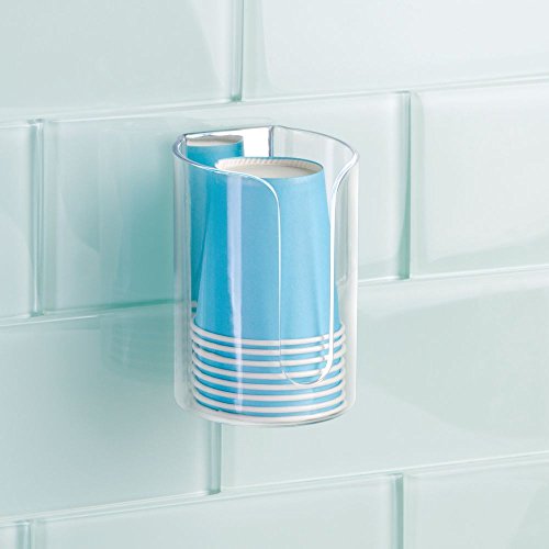 InterDesign AFFIXX, Peel-and-Stick Strong Self-Adhesive Una Disposable Paper Cup Dispenser for Bathroom - Clear/Mirrored Accent