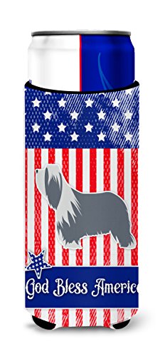 Caroline's Treasures USA Patriotic Bearded Collie Michelob Ultra Hugger For Slim Cans, Slim Can, Multicolor
