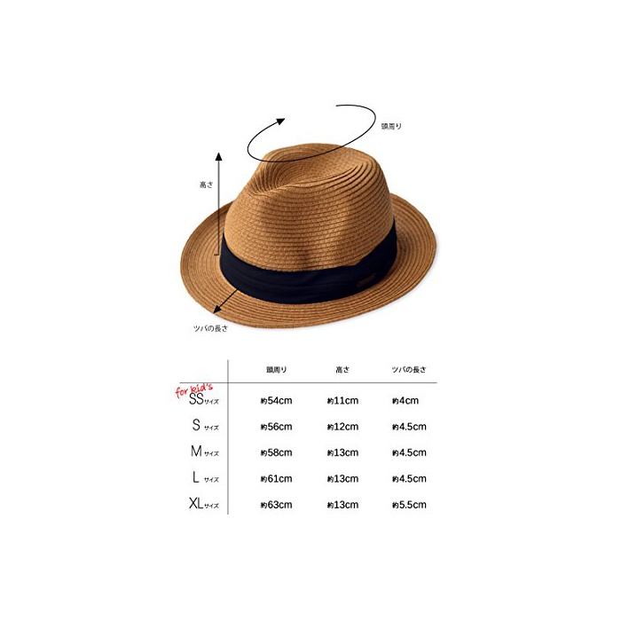 SS사이즈:머리 주위 약54cm 높이 약11cm 《즈바》약4cm / S사이즈:머리 주위 약56cm 높이 약12cm 《즈바》약4.5cm