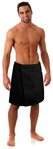 Men's Velour Cotton Terry Shower and Bath Towel Wrap (One Size) (Black)